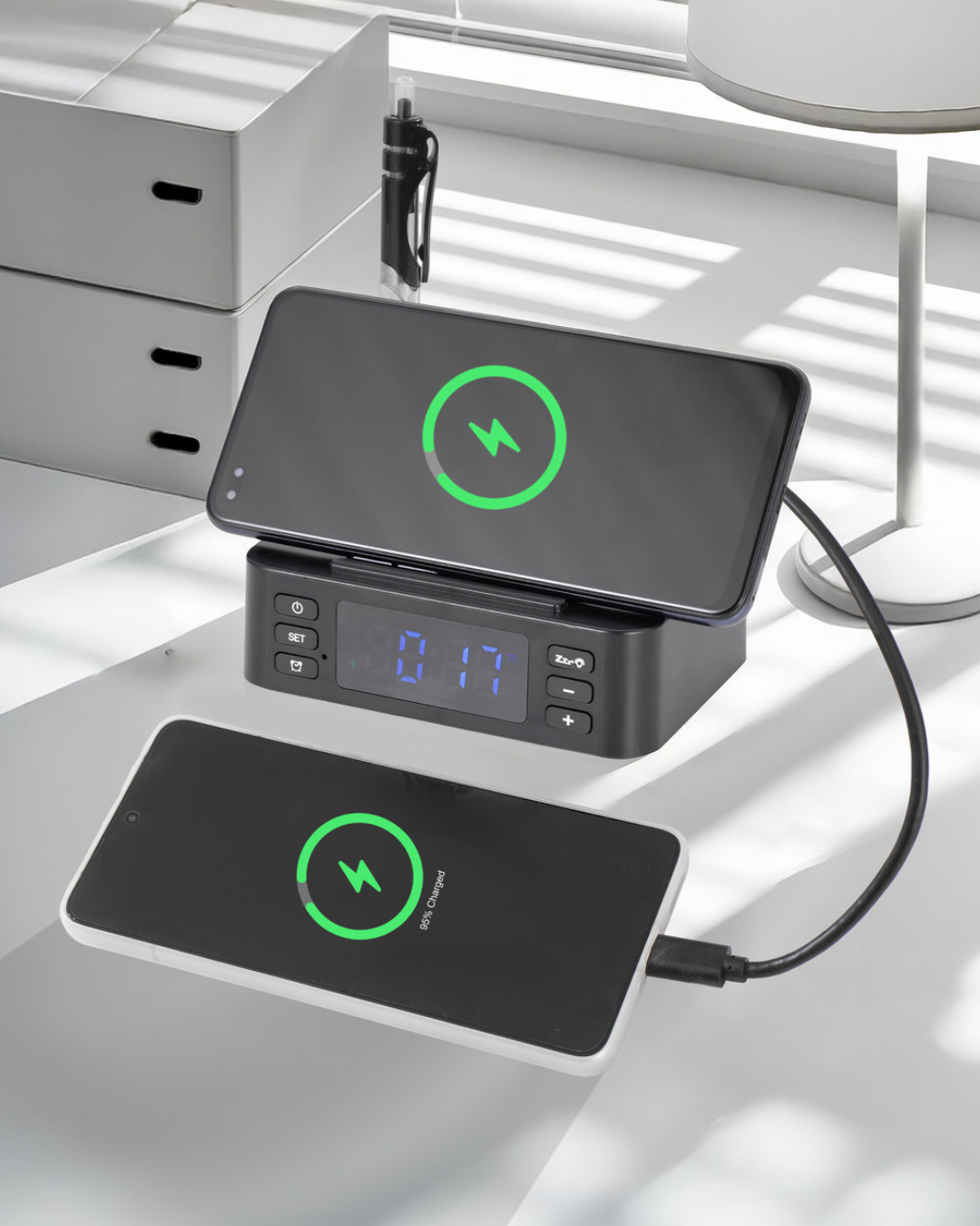 The built-in digital display clock keeps you punctual, while the wireless charger eliminates messy cables. For professionals managing multiple devices and tasks, Crate adds structure and convenience — turning an ordinary desk into a productivity powerhouse.